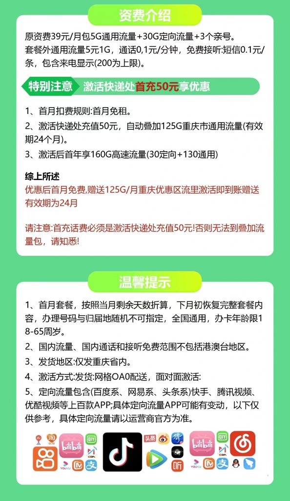 [v_blue]重庆的朋友们注意啦!只需39元,你就能拥有160G的大流量电话卡!📱[/v_blue]