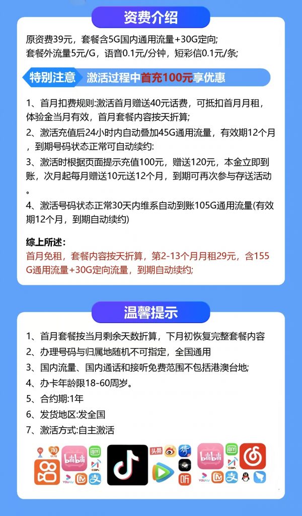 39 元/月 6G通用+30G通用