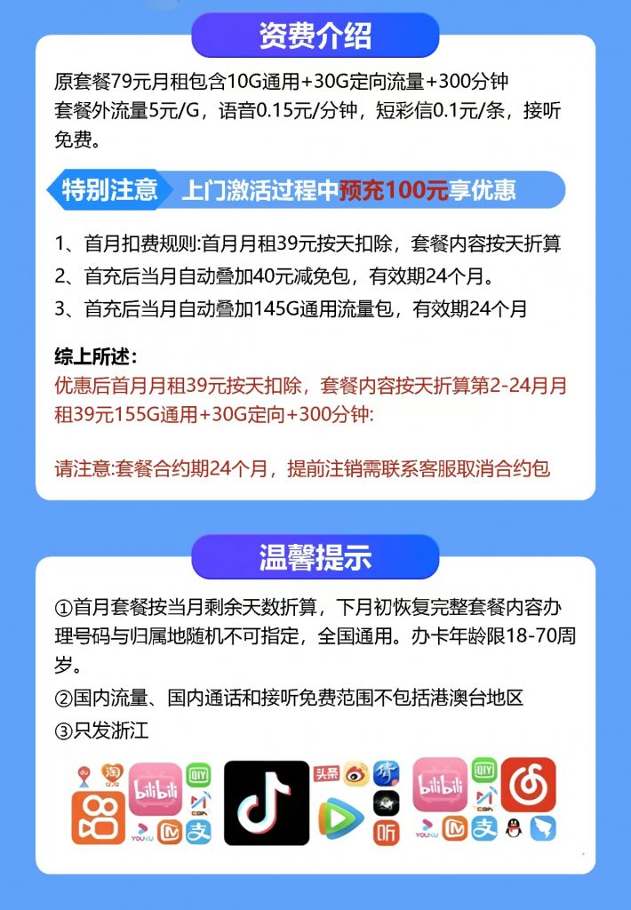 🎉【电信星宁卡限时抢购】浙江专享!仅需39元,185G流量+300分钟通话,2年优惠套餐等你来领!