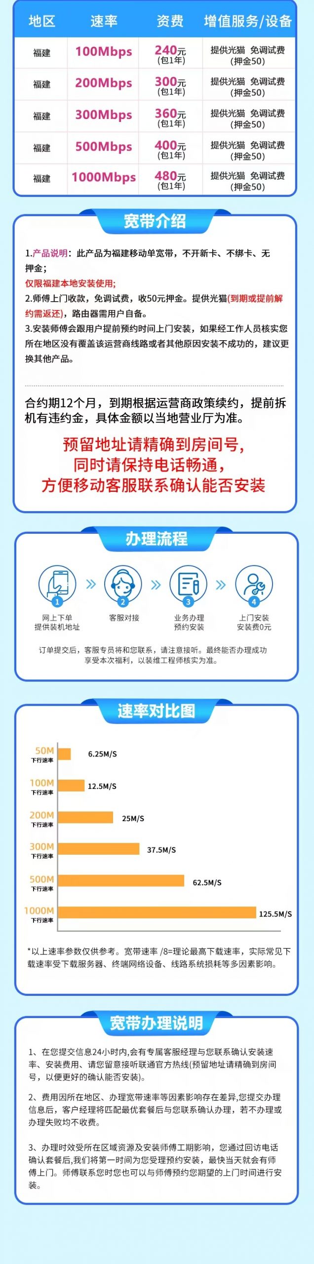 在线下单,预约上门安装(配光猫押金50元)不办卡单宽带
