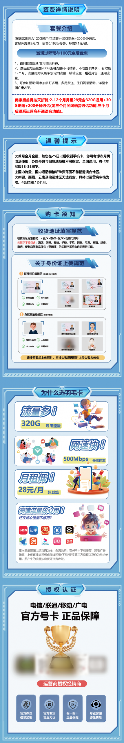 28元/月=120G通用(可结转)+30G定向+200分钟通话。套餐外流量5元/G,语音0.19元/分钟,短信0.1元/条。前三个月无语音通话功能,介意勿拍。
